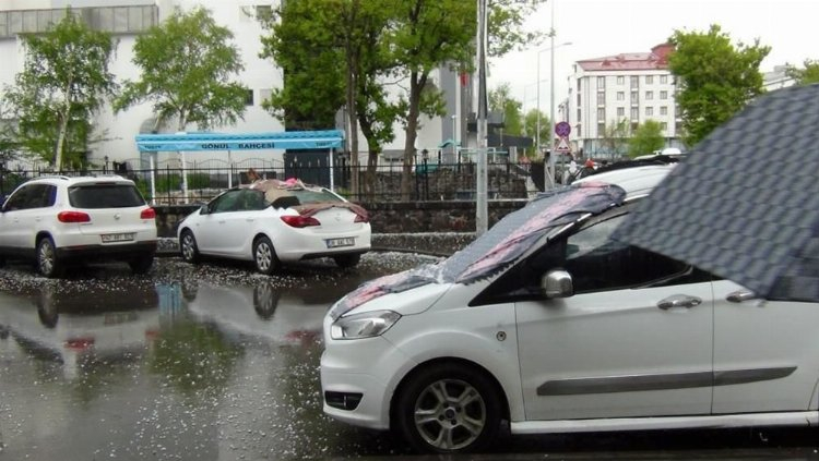 Ceviz büyüklüğündeki dolu tanelerinin isabet ettiği bir otomobilin arka camı kırıldı. Dolu, bazı araçların metal aksamında göçüklere yol açtı.