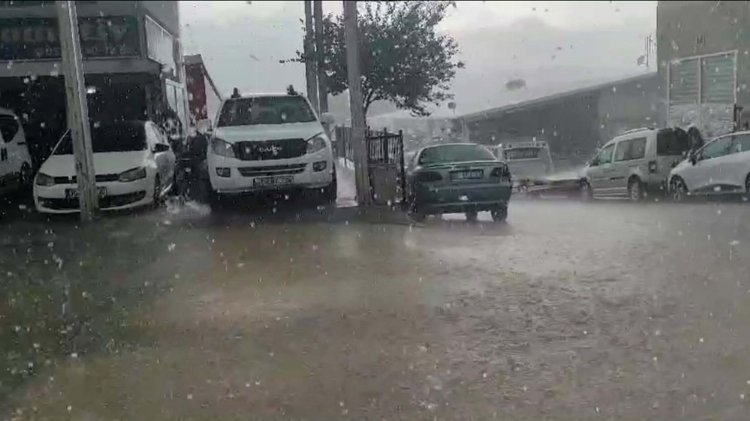 Yaklaşık 10 dakika süren dolu yağışı yerini sağanak yağmura bıraktı.