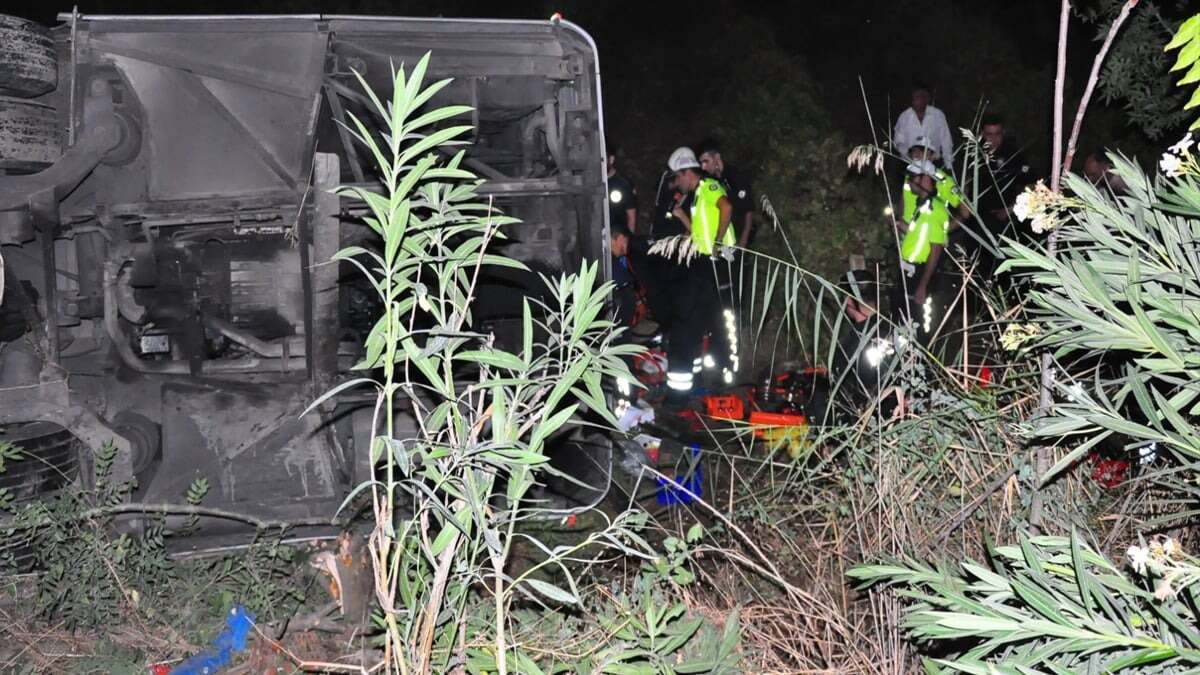 Kazada, otobüste bulunan yolculardan biri, "Yol kesiminde aniden kırınca virajı alamadı ve yuvarlandık. Takla attı" dedi.