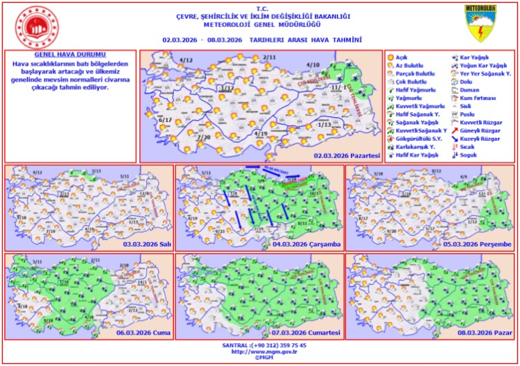 Hava sıcaklıklarının batı bölgelerden başlayarak artacağı ve ülke genelinde mevsim normalleri civarına çıkacağı tahmin ediliyor.