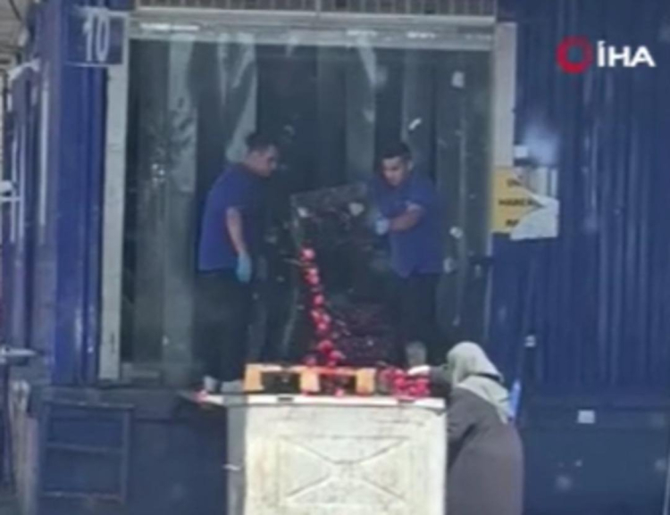 O anlar bir vatandaşın cep telefonu kamerasına yansırken, domateslerin çöpe dökülmesi tepkilere neden oldu.