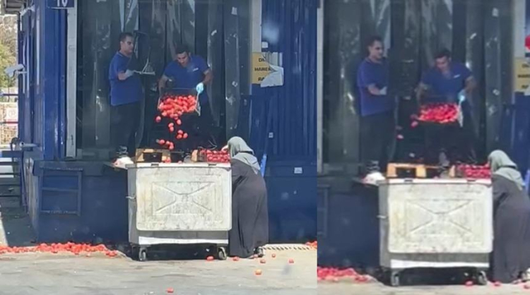 Öte yandan, görüntülerde başka bir vatandaşın dökülen domatesleri çöpün kenarından topladığı görüldü.