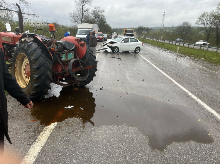 Zonguldak'ta seyir halinde giden otomobil, traktöre çarptı: 2 yaralı
