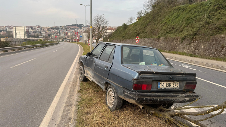 Zonguldak'ın Alaplı ilçesinde meydana gelen trafik kazasında, tırın çarptığı otomobil refüje çıktı. Maddi hasarın oluştuğu kazada yaralanan olmazken, araç içindekiler büyük panik yaşadı.