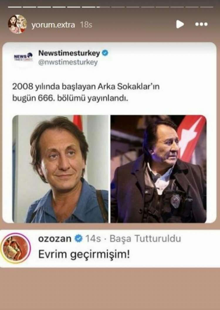 Arka Sokaklar kısa bir finalin ardından yeniden ekranlara dönmüştü. Arka Sokaklar 666. bölümü görünce dizinin Hüsnü Çoban'ı Özgür Ozan değişimin yer aldığı fotoğrafa bakın ne yorumda bulundu.