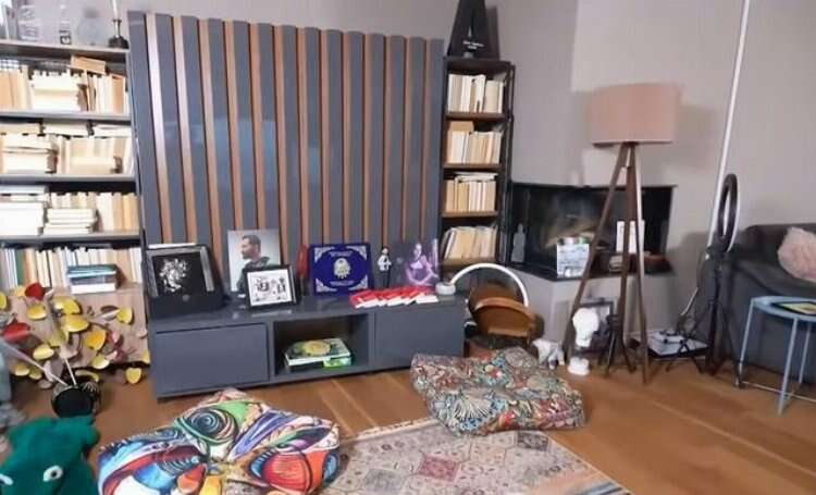 Dekorasyonda abartıdan uzak seçimler yapan Kapışmak'ın evinde en çok dikkat çeken detaylardan biri duvardaki tablolar oldu. Ünlü ismin devasa salonun tamamı kitap ve fotoğraflarla kaplı.