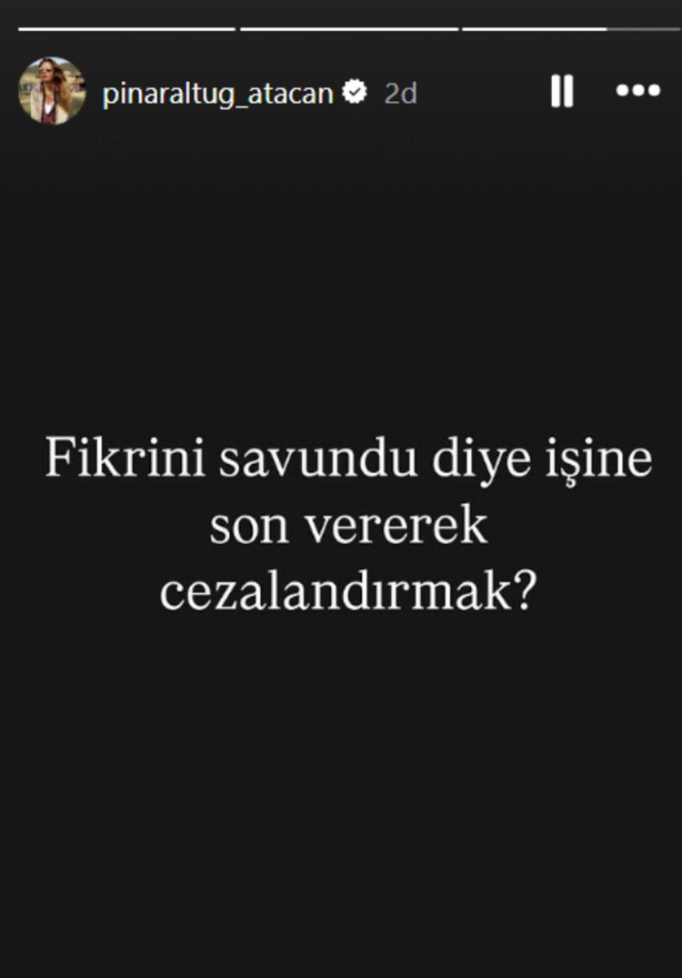 Açıklama sonrası Pusat X'in en çok konuşulan ismi oldu. Pınar Altuğ da Aybüke Pusat'a destek olarak "Fikrini savundu diye işine son vererek cezalandırmak?" yazdı.