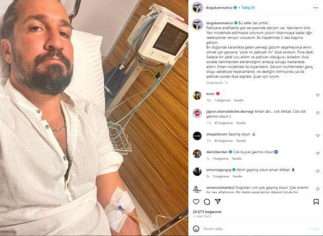 Ünlü şarkıcı Barış Manço'nun oğlu Doğukan Manço, bir düğünde patlıcan tüketmesi nedeniyle hastaneye kaldırıldı. Hasta yatağında paylaşımda bulunan ünlü isim, durumunun iyi olduğunu belirtip erken müdahale sayesinde toparladığını vurguladı.