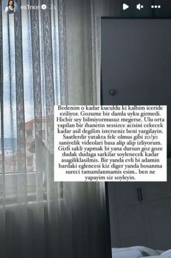 Daha sonra ağladığı bir videosunu paylaşan Esin İnce "Fiziksel ve ruhsal olarak iyi değilim. Biraz dinleneceğim" notunu düştü.