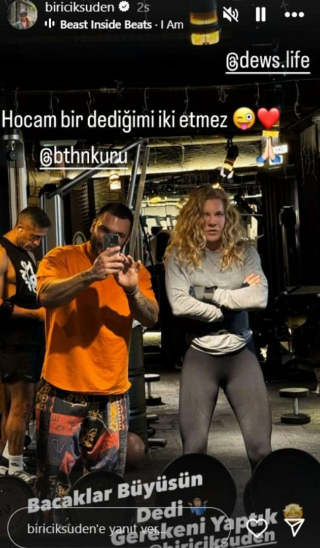 Spor salonundan yaptığı paylaşımlarla sık sık gündem olan Suden bu defa 'Bacaklar büyüsün' notu ile paylaşım yaptı. Her fırsatta kaslarını sergileyen SUden'in bu gönderisi sosyal medyayı salladı.