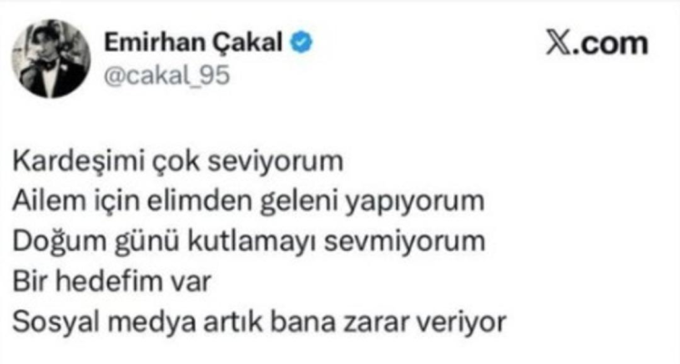 Emirhan Çakal ise sosyal medya hesabında yaptığı paylaşımda, "Kardeşimi çok seviyorum. Ailem için elimden geleni yapıyorum. Doğum günü kutlamayı sevmiyorum. Bir hedefim var. Sosyal medya artık bana zarar veriyor" sözleriyle bir süre platformdan uzak duracağını ima etti.