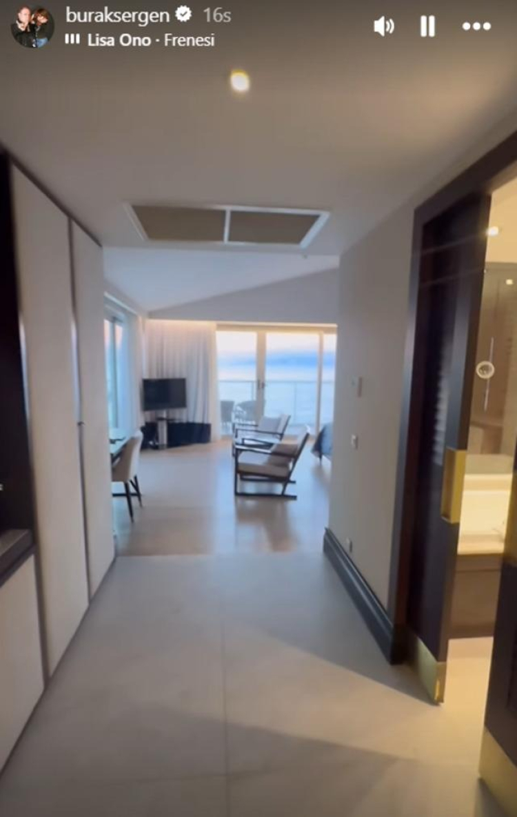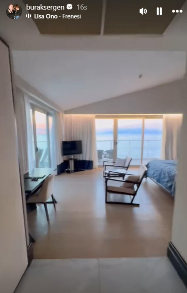 Balayından karelerini sosyal medya üzerinden paylaşmaya devam eden Burak Sergen ultra lüks balayı odasını da gösterdi.