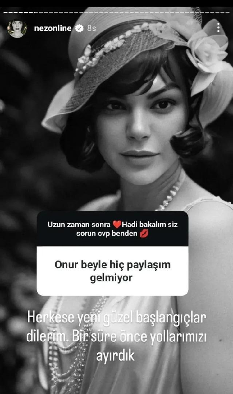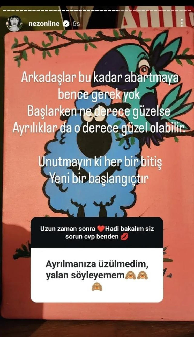 Aşk pozlarını sürekli paylaşan çift sessiz sedasız ayrıldı. Mynet'in haberine göre; sessiz sedasız yollarını ayıran ikili birbirini sosyal medya üzerinden takipten de çıktı. Nez sorular üzerine "Herkese yeni güzel başlangıçlar dilerim. Bir süre önce yollarımızı ayırdık" dedi.