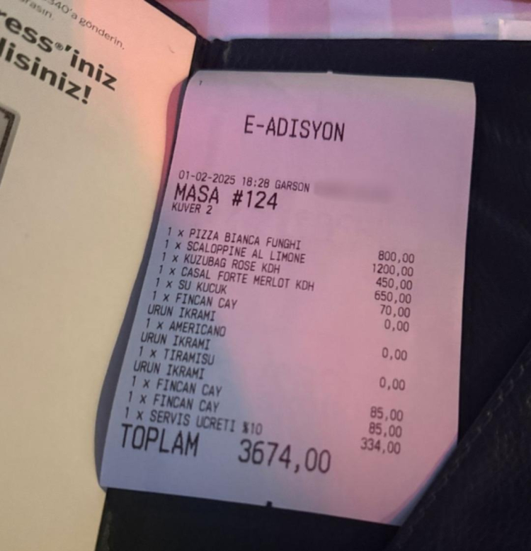 Onedio'da yer alan adisyonda gelen 3674 TL'lik hesap ve ikramlar dikkat çekti. Danilo Şef'in açık mutfak kullanılan restoranında kruvasanlar meşhur olsa da çayın fiyatı konuşuldu.