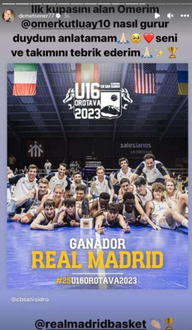 Ömer Kutluay, Real Madrid'te ilk başarısına imza attı ve kupa kaldırdı. Anne Demet Şener, oğlunun bu başarısını sosyal medya hesabından paylaşıp oğlunu ve takım arkadaşlarını tebrik etti.