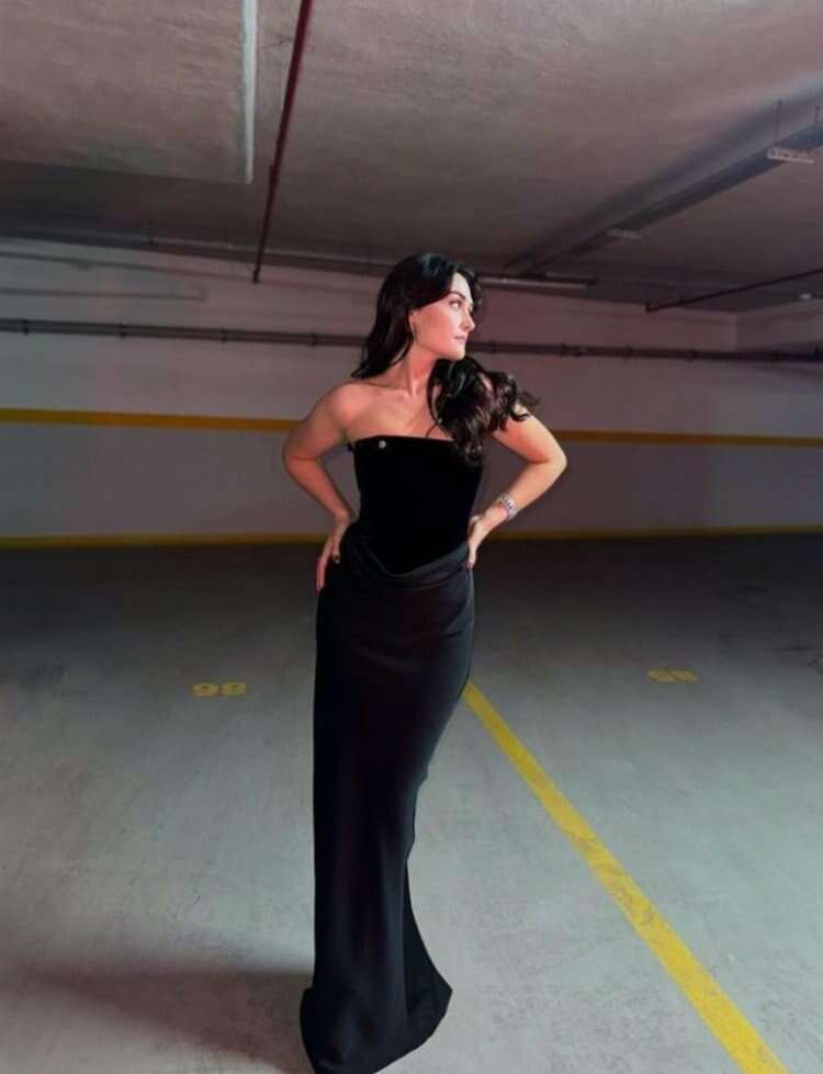 Ünlü oyuncu pozlarını 7 milyon takipçisi bulunan Instagram hesabından paylaştı. Otoparktan paylaşım yapan oyuncunun uzun siyah elbisesi ve kusursuz makyajı ise tam not aldı.