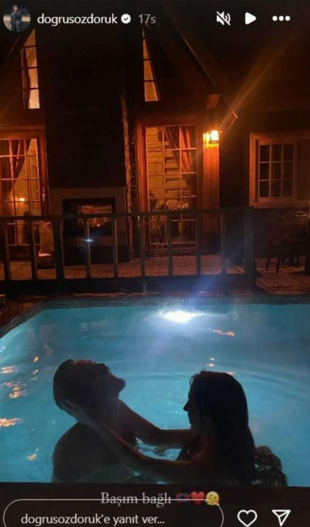 Adını Doruk yapan eski yarışmacı havuzda aşka geldi ve pozlarını da "Başım bağlı" notuyla paylaştı.