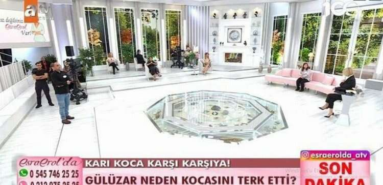 Gündüz kuşağının en çok izlenen yapımları arasında yer alan ve ünlü sunucu Esra Erol'un sunduğu Esra Erol'da programı, yeni bir olayla gündeme geldi. Eşiyle görüşmek için stüdyoya gelen Gülüzar Hanım bir anda sinirlenerek eşine su şişesi fırlattı. Bir güvenlik görevlisi de yaralandı.