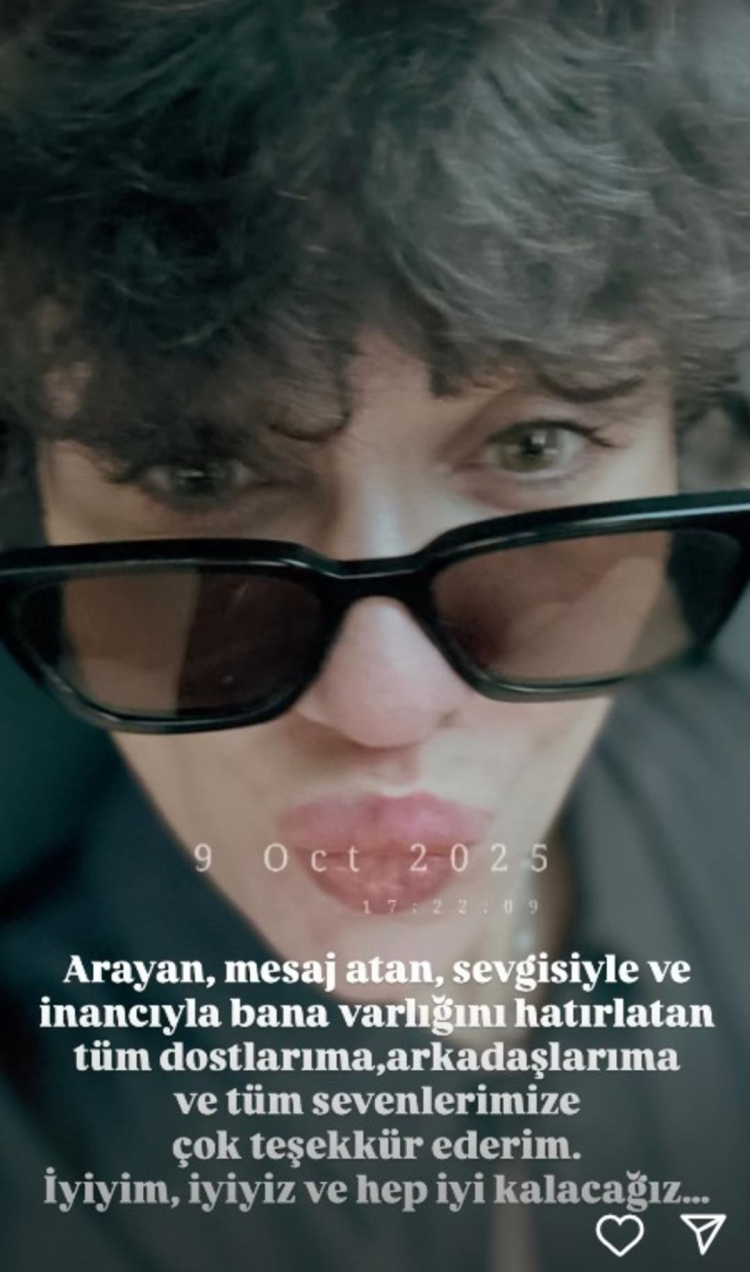 Akalay, paylaşımında şu ifadelere yer verdi: "Arayan, mesaj atan, sevgisiyle ve inancıyla bana varlığını hatırlatan tüm dostlarıma, arkadaşlarıma ve tüm sevenlerimize çok teşekkür ederim. İyiyim, iyiyiz ve hep iyi kalacağız..."