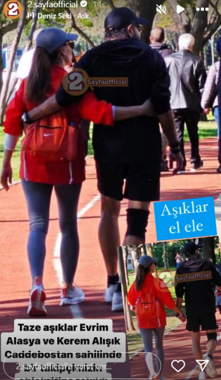Evrim Alasya ve Kerem Alışık aşklarını saklamıyor. Caddebostan sahilinde yürüyüşe çıkan çift sarmaş dolaş halleriyle dikkat çekti.