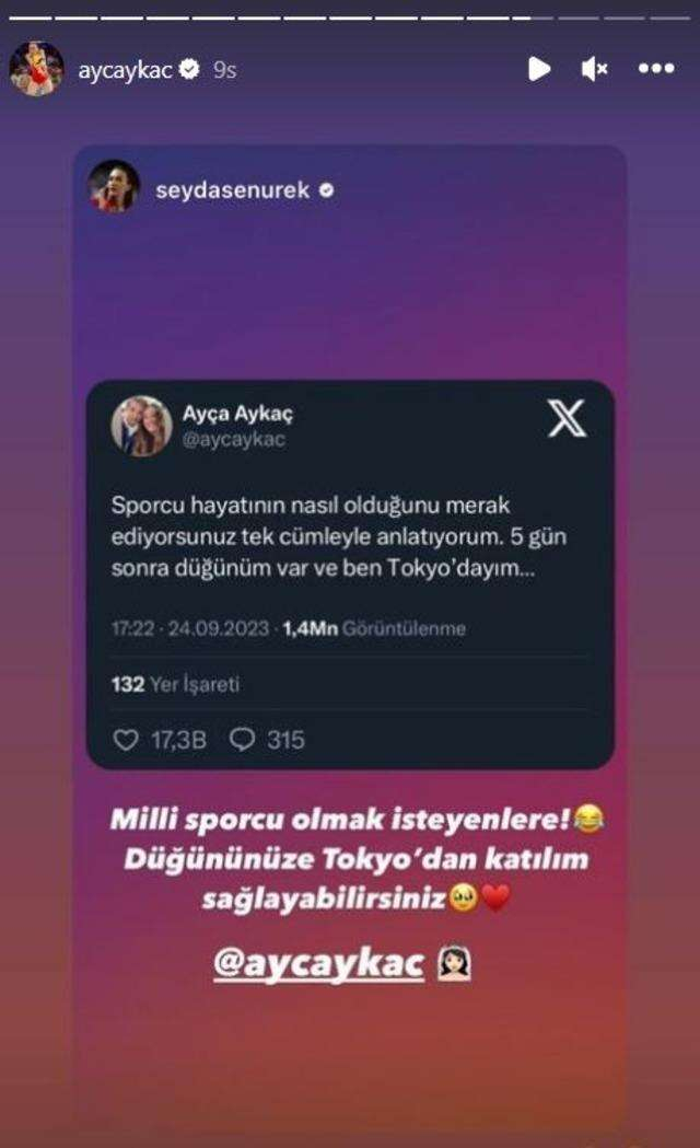 büyük başarılar kazanarak herkesin takdirini kazanan voleybolculardan Ayça Aykaç paylaşımında 'Sporcu hayatının nasıl olduğunu merak ediyorsunuz tek cümleyle anlatıyorum. 5 gün sonra düğünüm var ve ben Tokyo’dayım…' dedi.