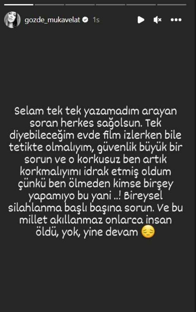 "Çok tedirgin oldum" diyen Gözde Mukavelat "Polis geldi kovan aradı, ara sokaklarda kamera yok, ne yapılabilir ki, Allah'a emanet yaşıyoruz. Burası Şişli şehrin göbeği... Dikkat edin bile diyemiyorum çok korktum sadece. Ülkede güvenlik büyük sorun" diyerek sitem etti.