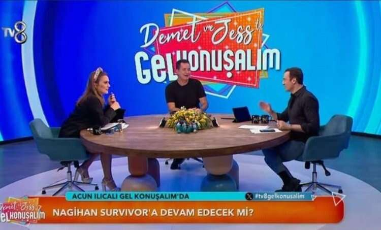 Acun Ilıcalı Demet Akalın'ın sorusuna "Nagihan'ın durumu şöyle seneye kalmasından yanayım, yani ayrılması lazım aslında ama Nagihan da şimdi... Kalıcı hazar olmaz ama bu performansıyla da Survivor filan kazanamaz. Nagihan buna rağmen devam edeceğim diyerek gözü döndüyse o hakkını da elinden almak istemiyorum" yanıtını verdi.