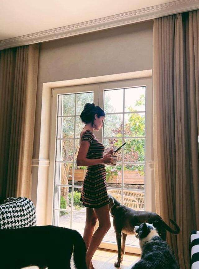 İş insanı Hakan Sabancı ile beraber olan Erçel evinden yeni fotoğraflarını yayınladı. Güzel oyuncu fotoğraflarda evcil hayvanlarına da yer verdi.