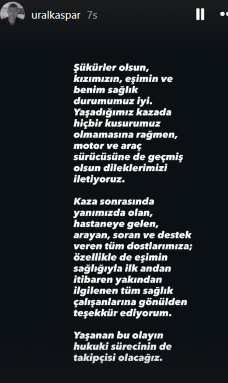 Ural Kaspar eşinin ve kızının durumunun iyi olduğunu açıkladı. İrem Helvacıoğlu'nun yakın arkadaşı ise sosyal medyadan "İrem iyi, bebek evde sapasağlam. Herkes sakin olsun. Yalan haberlere itibar etmeyin. İrem’in küçük bir dikişi var, taburcu olacak. Haberlere inanmayın, yanındayız." açıklamasında bulundu.