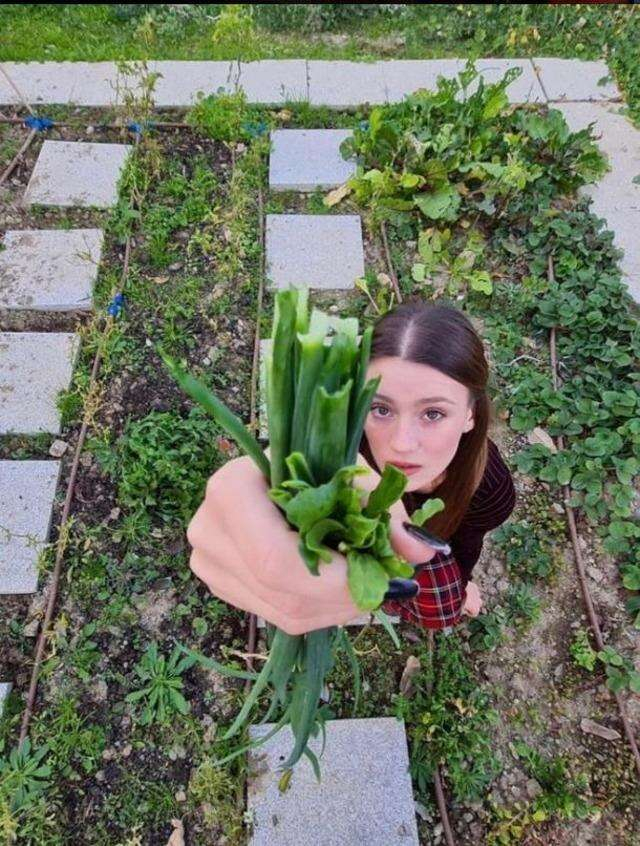 Gizem Karaca son olarak evinin bahçesinden topladığı sebzelerle menemen yaptığı anları paylaştı. Videoda ise evinin kocaman bahçesi dikkat çekti.