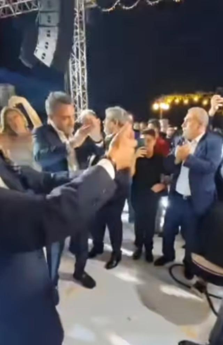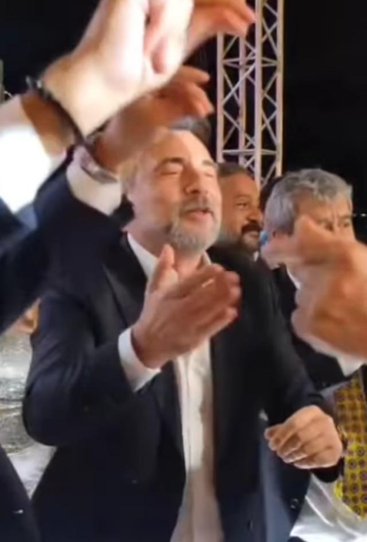 Düğünde türkücü arkadaşı Oktay Kaynarca ve diğer iş insanı dostlarıyla karşılıklı göbek attı. O anlar sosyal medyaya da yansıdı.