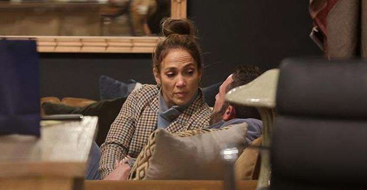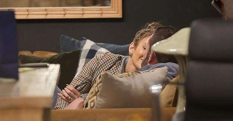 Kanepede birbirlerine sarılan ikili, romantik anlar yaşadı. Lopez ile Affleck'in aşk dolu halleri, anbean kameralara yansıdı.