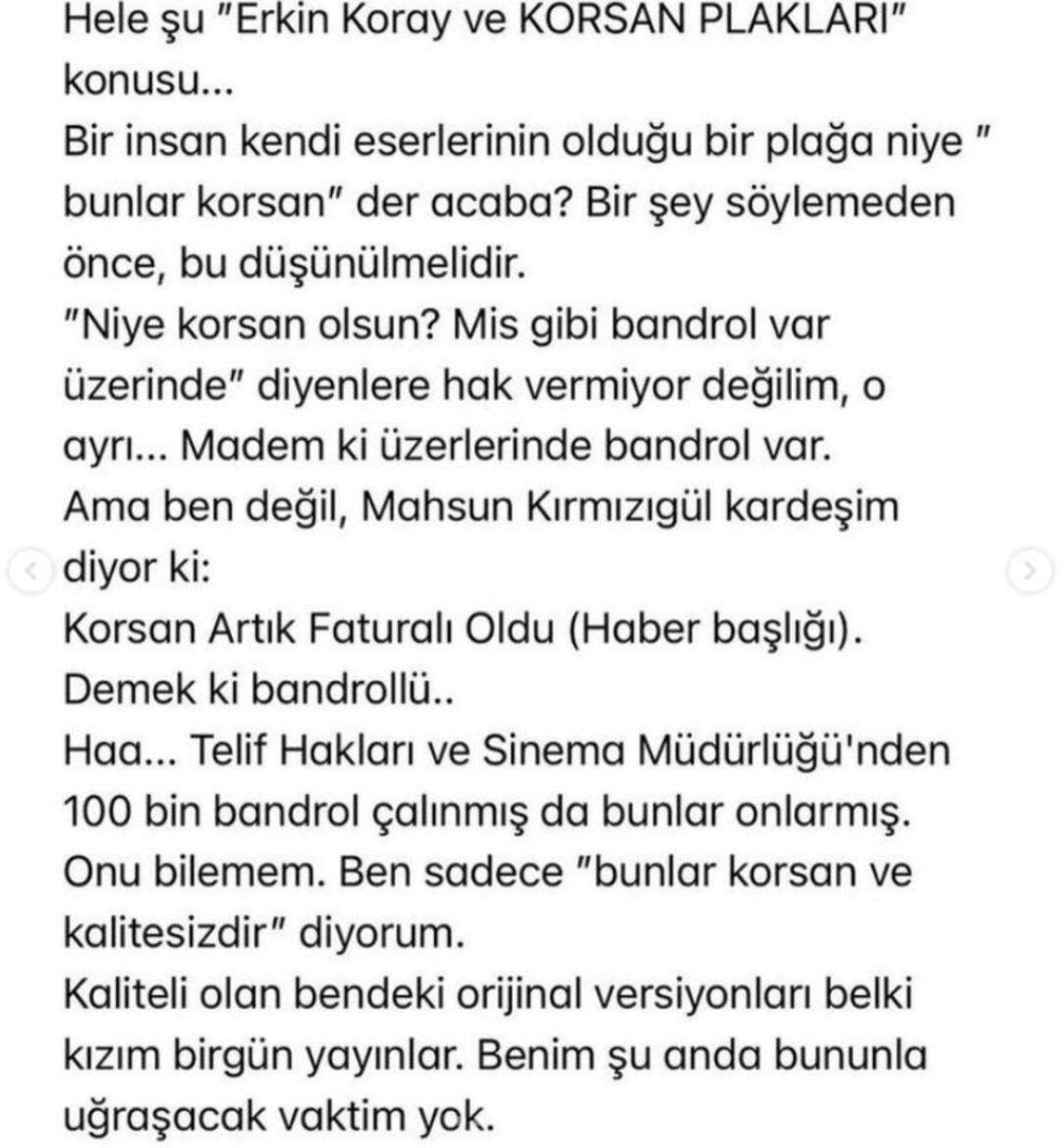 Anadolu rock müziğinin efsanevi ismi Erkin Koray, 82 yaşında hayatını kaybetti. Ölümünün ardından efsane isim anılırken müzik yazarı Kanat Atkaya değerli bir paylaşımda bulundu. Atkaya bir süre önce Erkin Koray'ın kendisine yazdığı mektubu paylaştı.
