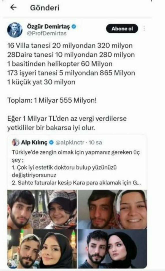 Demirtaş paylaşımında fenomen ismin vermesi gereken miktarına dikkat çekip "Eğer 1 milyar TL’den az vergi verdilerse yetkililer bir bakarsa iyi olur"