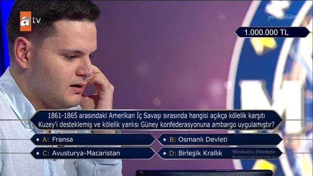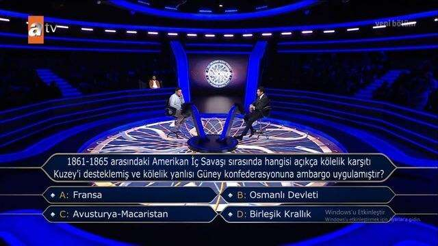 Kenan İmirzalıoğlu'nun verdiği tepki üzerine sorunun cevabı da açıklandı. Cevap Osmanlı Devleti idi.