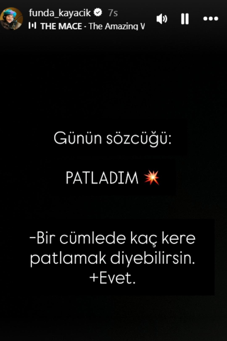 Funda Kayacık daha sonra sosyal medyadan da kendisiyle dalga geçerek 'patladım' paylaşımı yaptı.