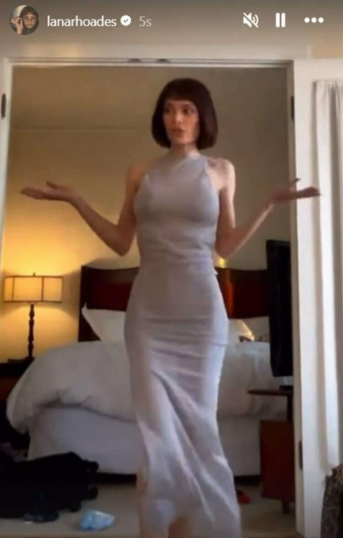 Instagram hesabının hikaye bölümünden verdiği pozlarında Rhoades derin ve derin bacak dekolteli kıyafetiyle yatak odasında çekilen pozlarını paylaşarak fiziksel görüntüsünü eleştirilere adeta meydan okudu.