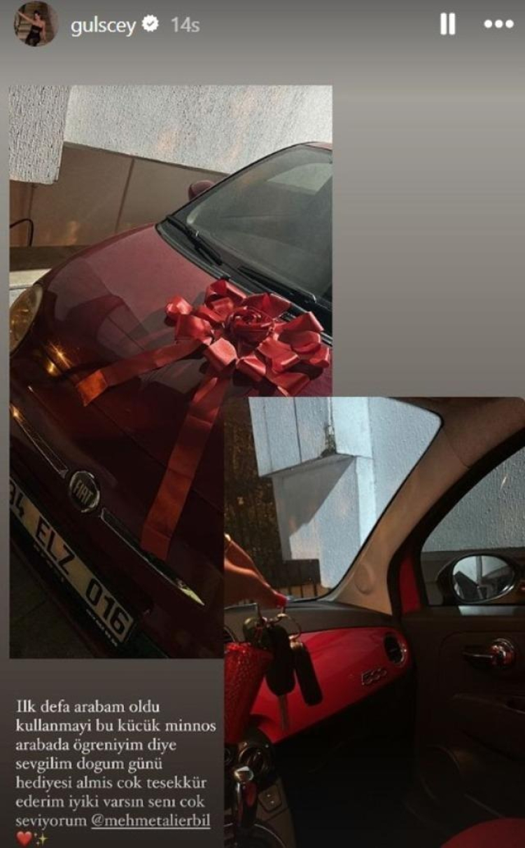 Mehmet Ali Erbil sevgilisine doğum günü hediyesi olarak kırmızı bir araba almış. Ceylan arabasını paylaşarak 'İlk defa arabam oldu. Kullanmayı bu küçük minnoş araba da öğreneyim diye sevgilim doğum günü hediyesi almış. Çok teşekkür ederim iyi ki carsın. Seni çok seviyorum' notunu düştü.