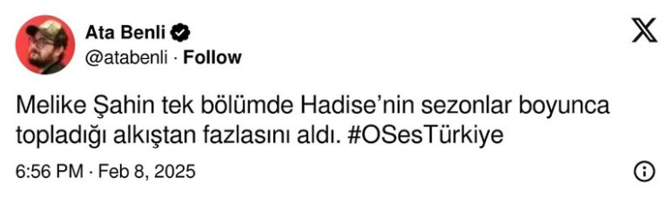 Melike Şahin'e O Ses Türkiye seyircisinden tam not! "Hadise'den daha iyi"