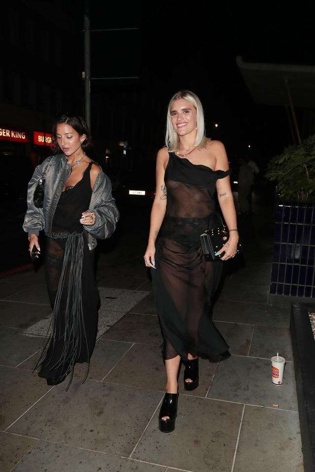 Şeffaf kıyafetiyle frikik vermekten kurtulamayan genç model yine de rahatsız değildi. Model, giyimindeki talihsizliğe rağmen partiden çıkarken oldukça neşeli görünüyordu.