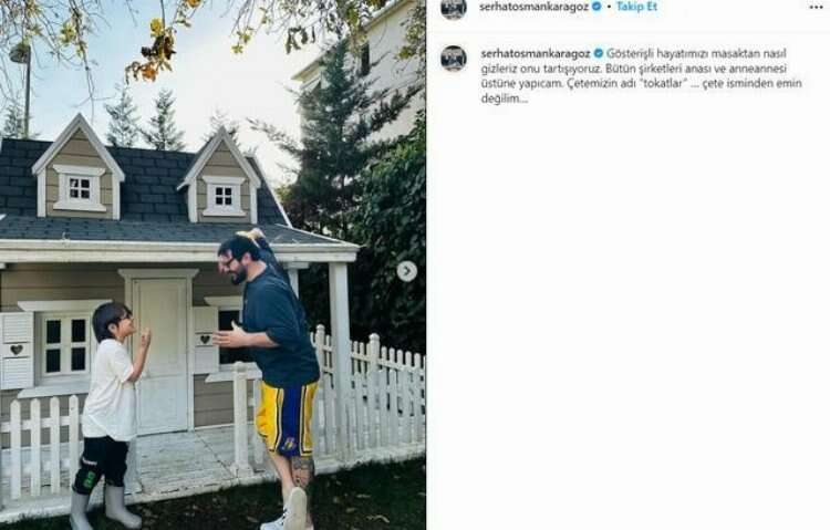 Oğlu Batı ile oldukça eğlenceli hallerini Instagram hesabından paylaşan Karagöz'ün 'Gösterişli hayatımızı masaktan nasıl gizleriz onu tartışıyoruz. Bütün şirketleri anası ve anneannesi üstüne yapıcam. Çetemizin adı “tokatlar” … çete isminden emin değilim…' notunu düştüğü karesi de çok konuşulmuştu.