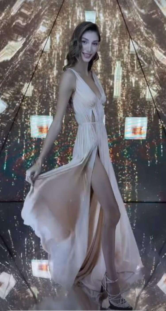 Derin bacak dekoltesini göstermek için şekilden şekle giren Şevval Şahin'e sosyal medyada yorumlar gecikmedi.