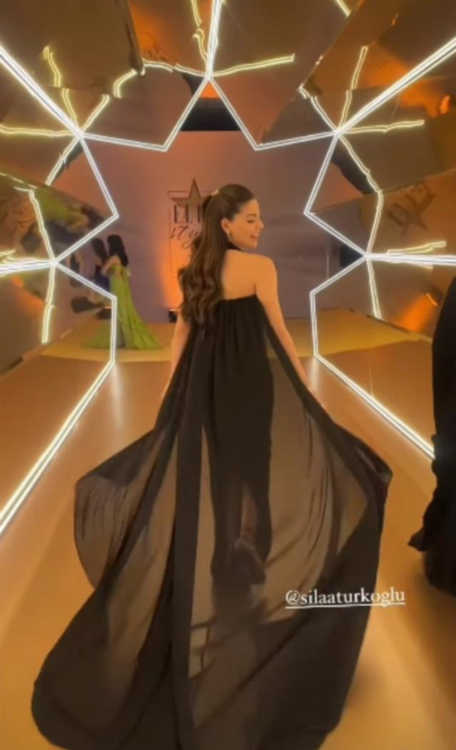Uzun kuyruklu, göğüs dekolteli siyah bir elbise giyen Sıla Türkoğlu'na sosyal medyada yorum yağdı.