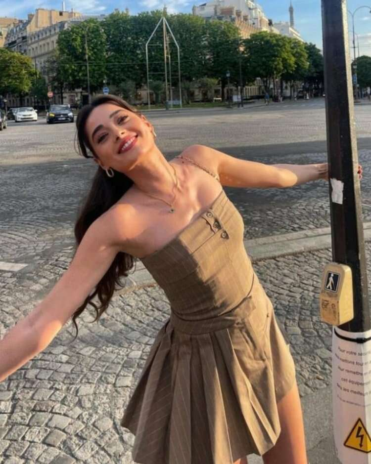 Geceden pozlarını sosyal medya hesabı üzerinden takipçileriyle paylaşan Simay Barlas derin göğüs dekoltesi ve derin yırtmacıyla adeta nefes kesti.