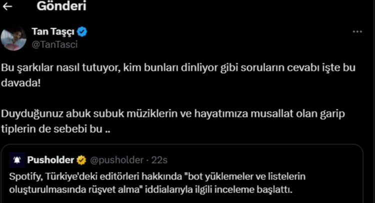 Spotify'dan Türkiye'deki editörlerine soruşturma! Tan Taşçı kendini tutamadı...