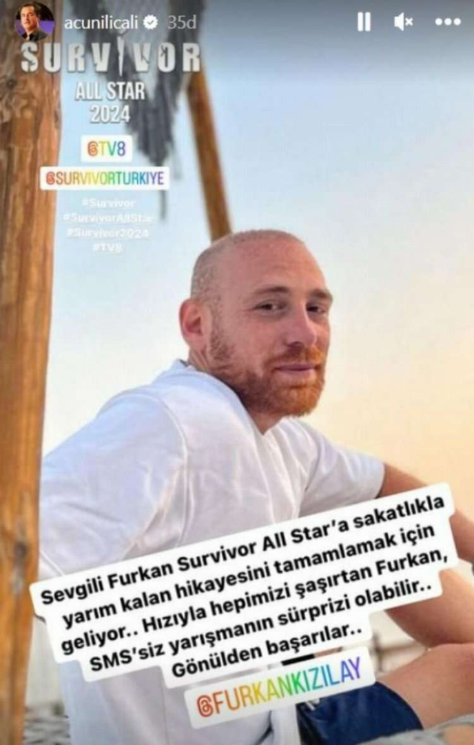 Acun Ilıcalı sosyal medya üzerinden yaptığı açıklamada Survivor All Star kadrosuna dahil olan yeni bir ismi daha duyurdu. Ilıcalı, Furkan Kızılay'ın yeniden kadroda olduğunu söyledi ve şu ifadeleri kullandı: