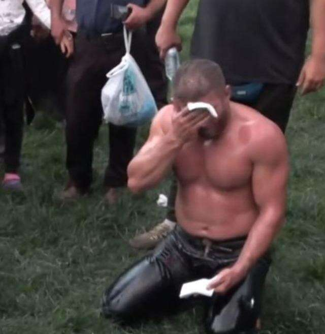 Muğla'nın Seydikemer ilçesinde düzenlenen yağlı güreşlerde rakibi Enes Doğan'ı yenip, başpehlivan olan İsmail Balaban, müsabakanın hemen ardından dinlenmeye çalışırken yanına gelip, sarılarak fotoğraf çekilmek isteyen hayranı ile fena tartıştı.