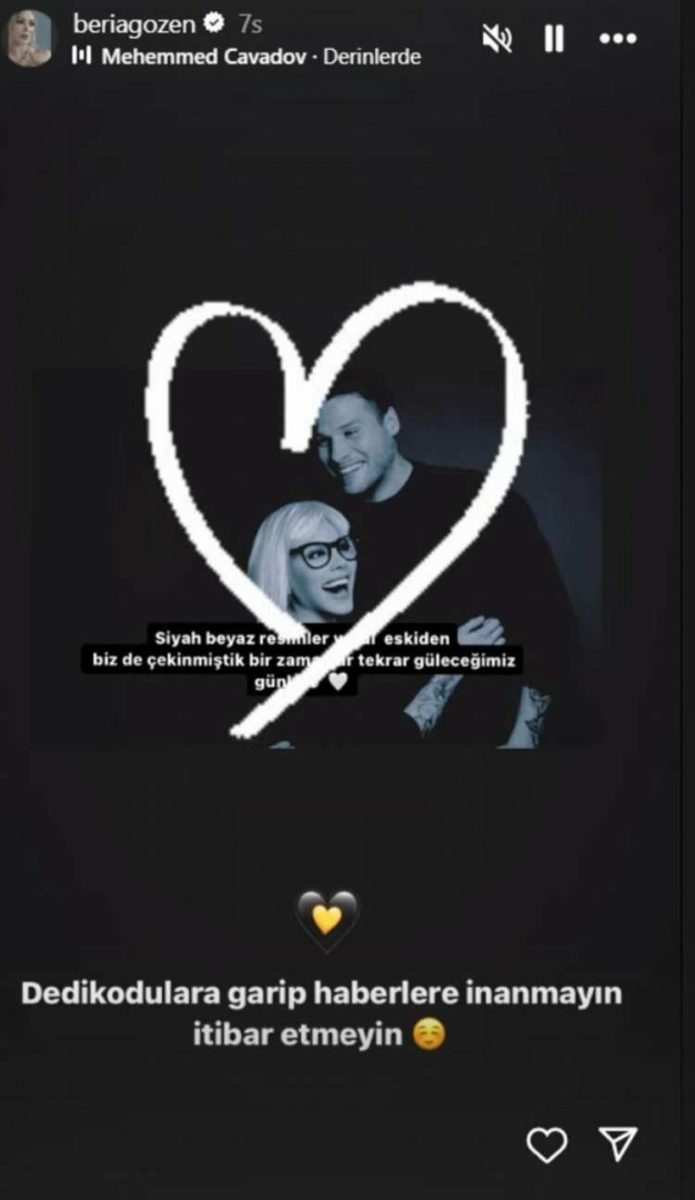 Beria Özden'den boşanma iddialarına yanıt verdi. Özden, Instagram hesabından yaptığı paylaşımla "Dedikodulara garip haberlere inanmayın itibar etmeyin" dedi.