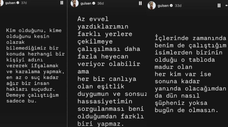 Gülşen daha sonraki paylaşımlarda ise açıklamalarının farklı yere çekildiğini belirterek şunları söyledi:
