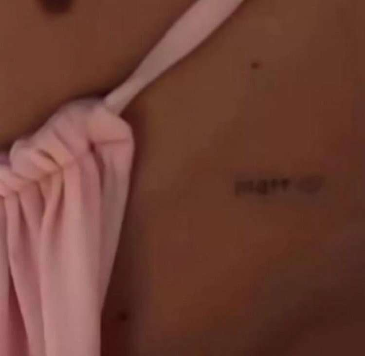 Maldivler'de güneşin tadını çıkartan fenomen isim pembe bikini takımıyla kameraya karşısında poz verirken kasık bölgesinin alt kısmına doğru bir yazı sevenlerinin dikkatini çekti. Fenomen ismin vücudunda küçük bir kalp bulunan "Matt" dövmesini fark eden kullanıcılar yorum bölümüne akın etti.
